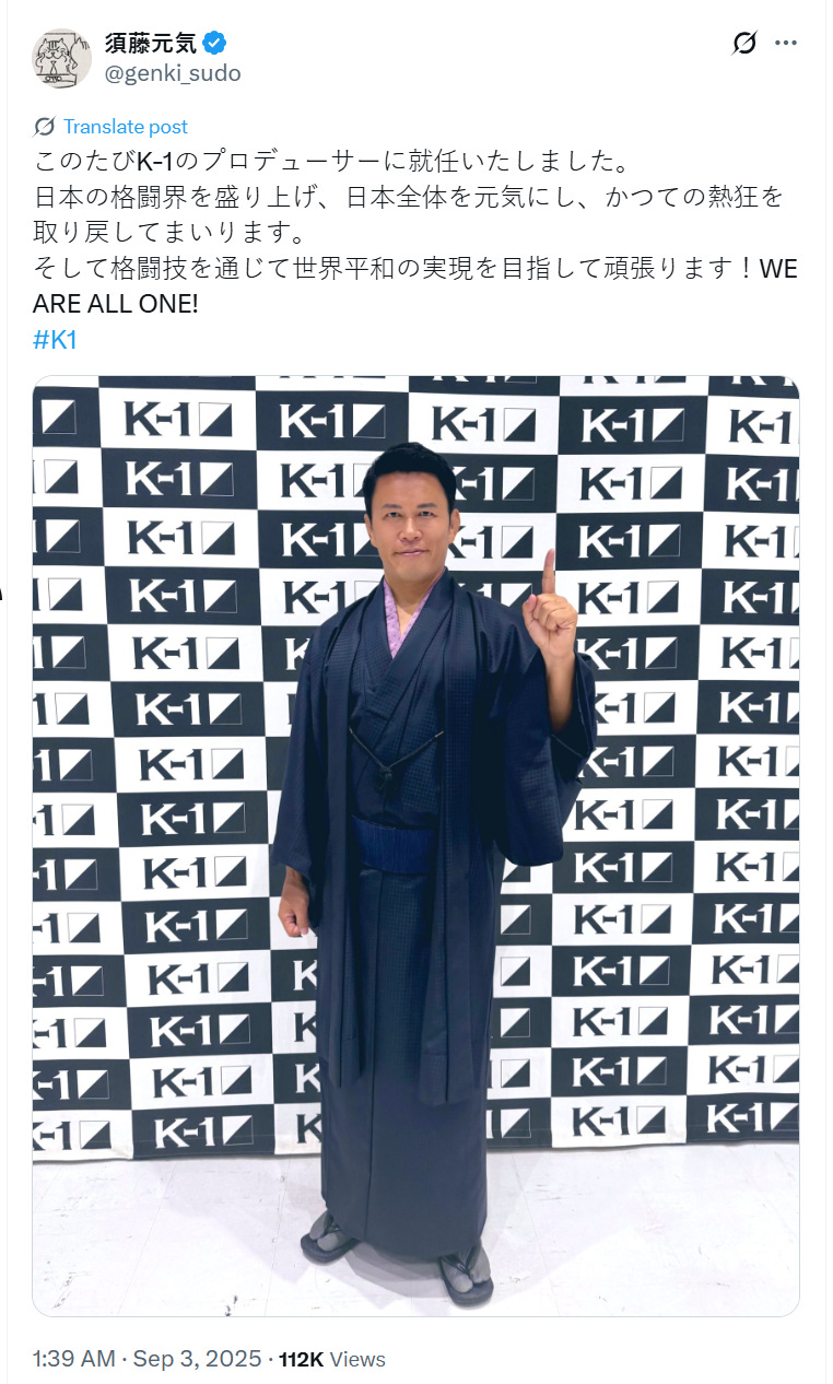 Genki Sudo joins K-1 + NTT Docomo's big bet on Shooto & Tatsuro Taira