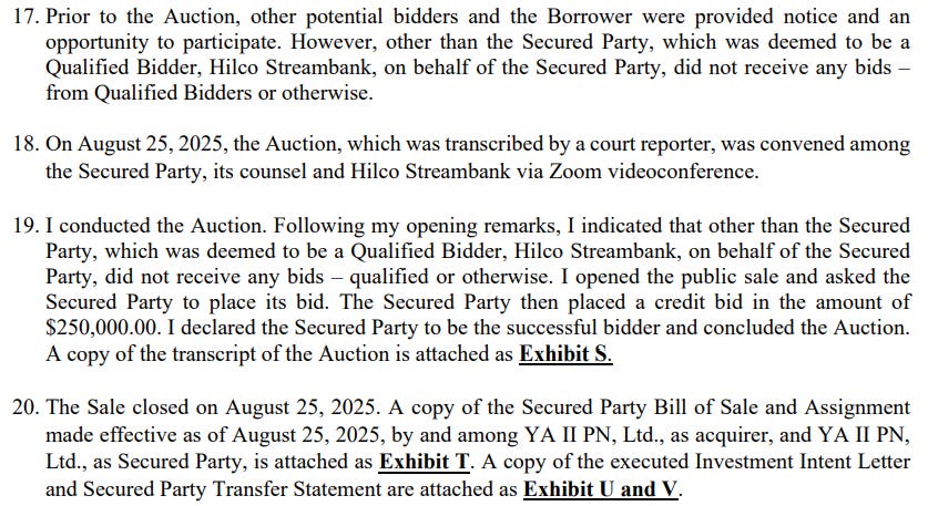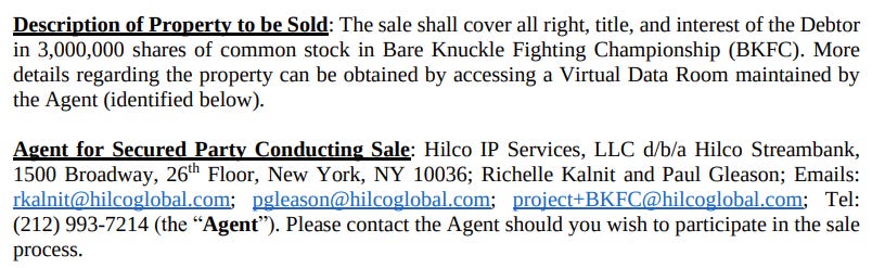 Yorkville proceeded to go after Triller’s most valuable asset, BKFC. Three million common shares of BKFC stock were put up for sale via a non-judicial procedure called a UCC-9 auction.