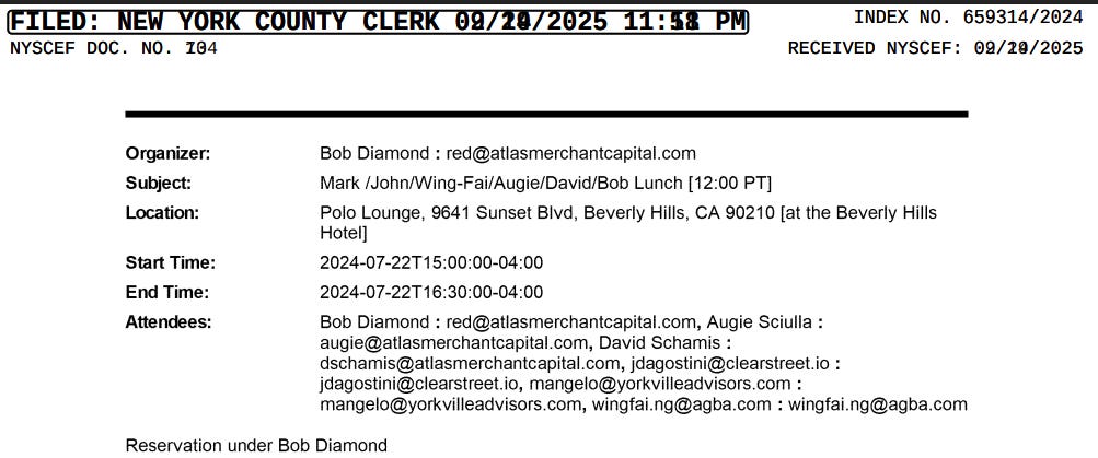The contents of the e-mails revealed some very interesting and high-profile financiers involved in the Triller fundraising process, including John D’Agostini of Clear Street and Bob Diamond of Atlas Merchant Capital. Mr. Diamond would soon find himself suing Triller in Federal court, obtaining a $2 million default judgment plus 5.9M common shares of Triller stock.