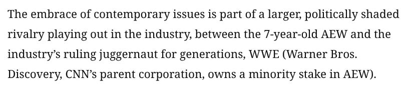 A recent CNN article admitted that WBD has a minority ownership stake in AEW.